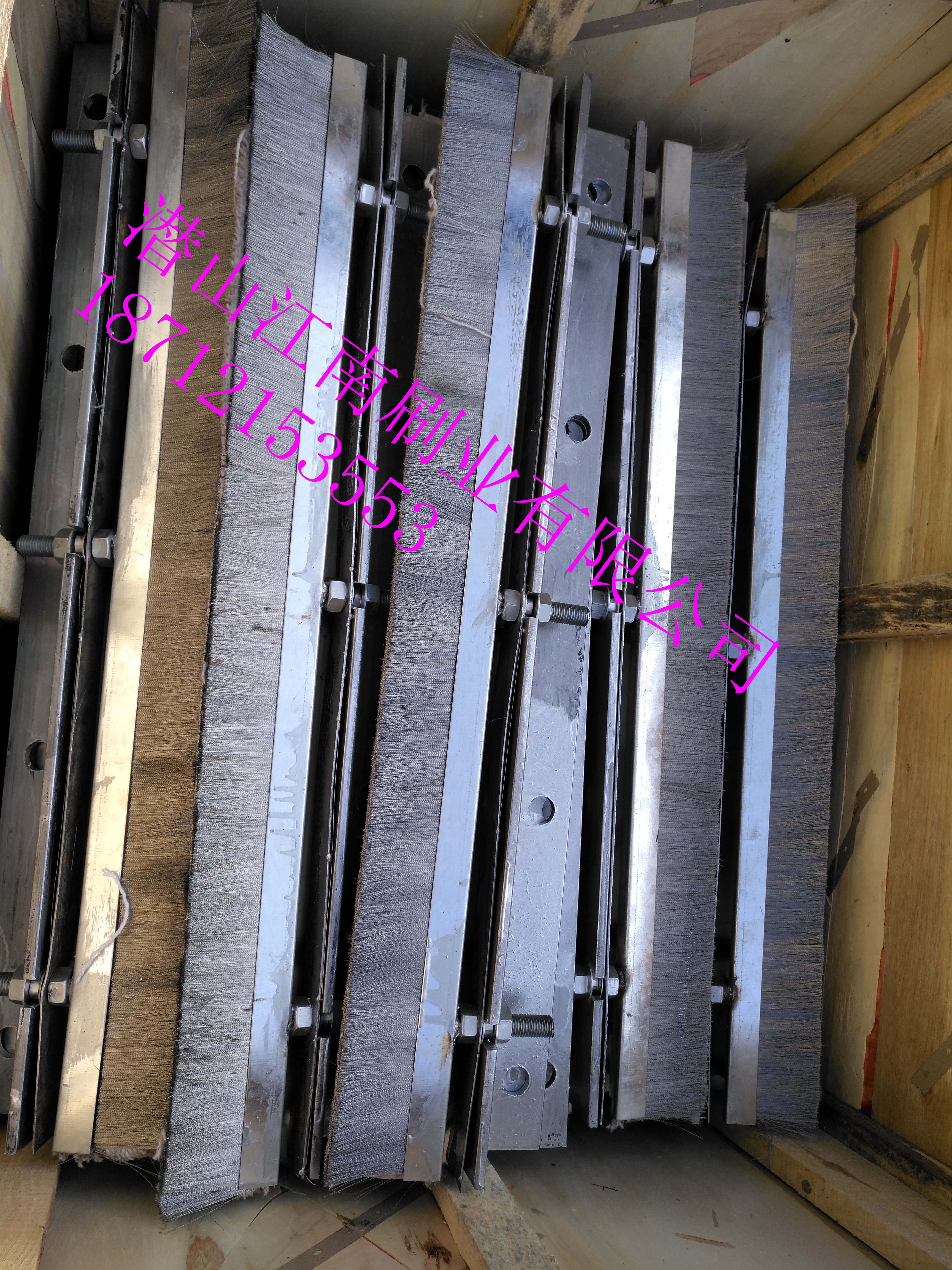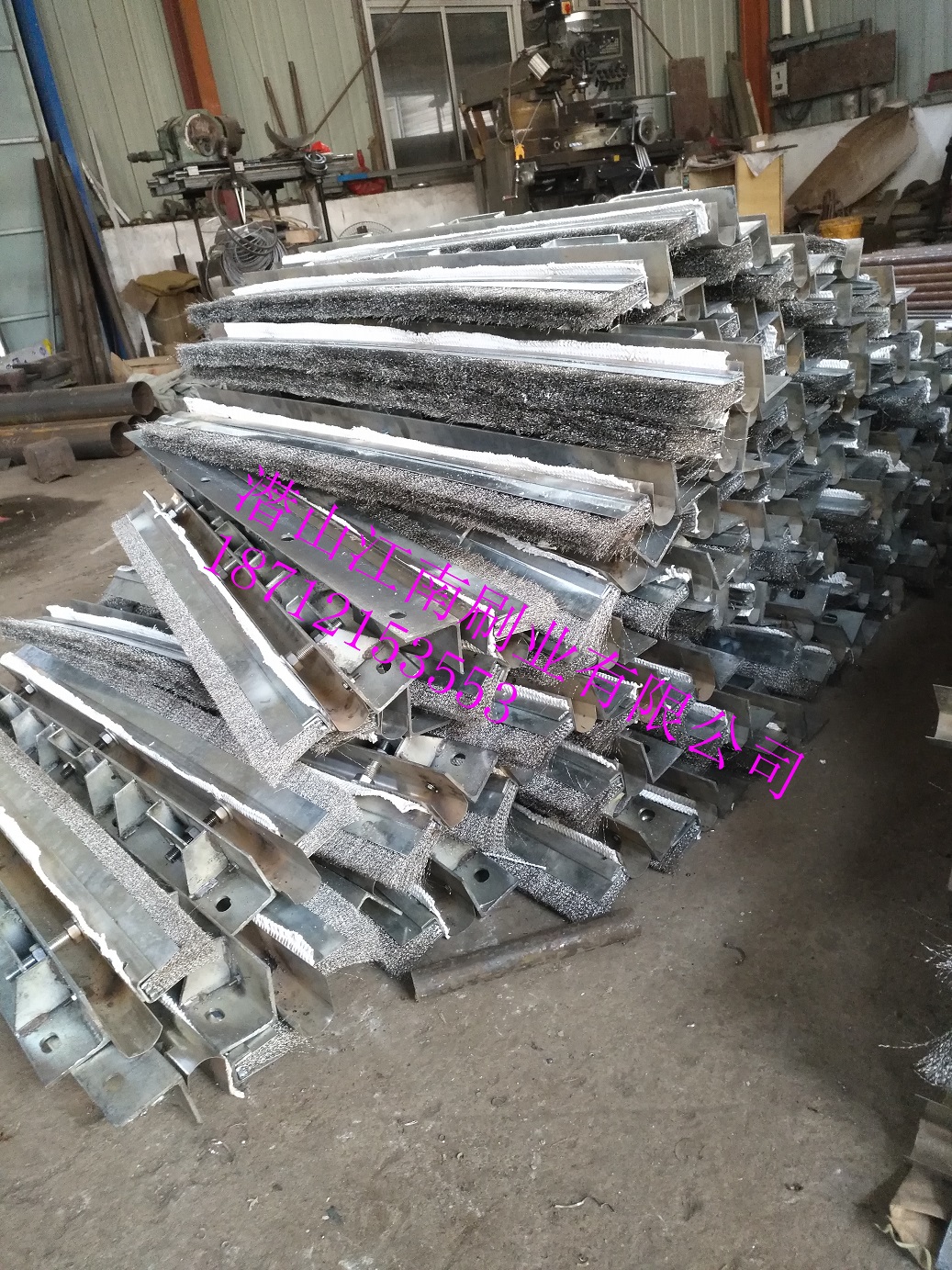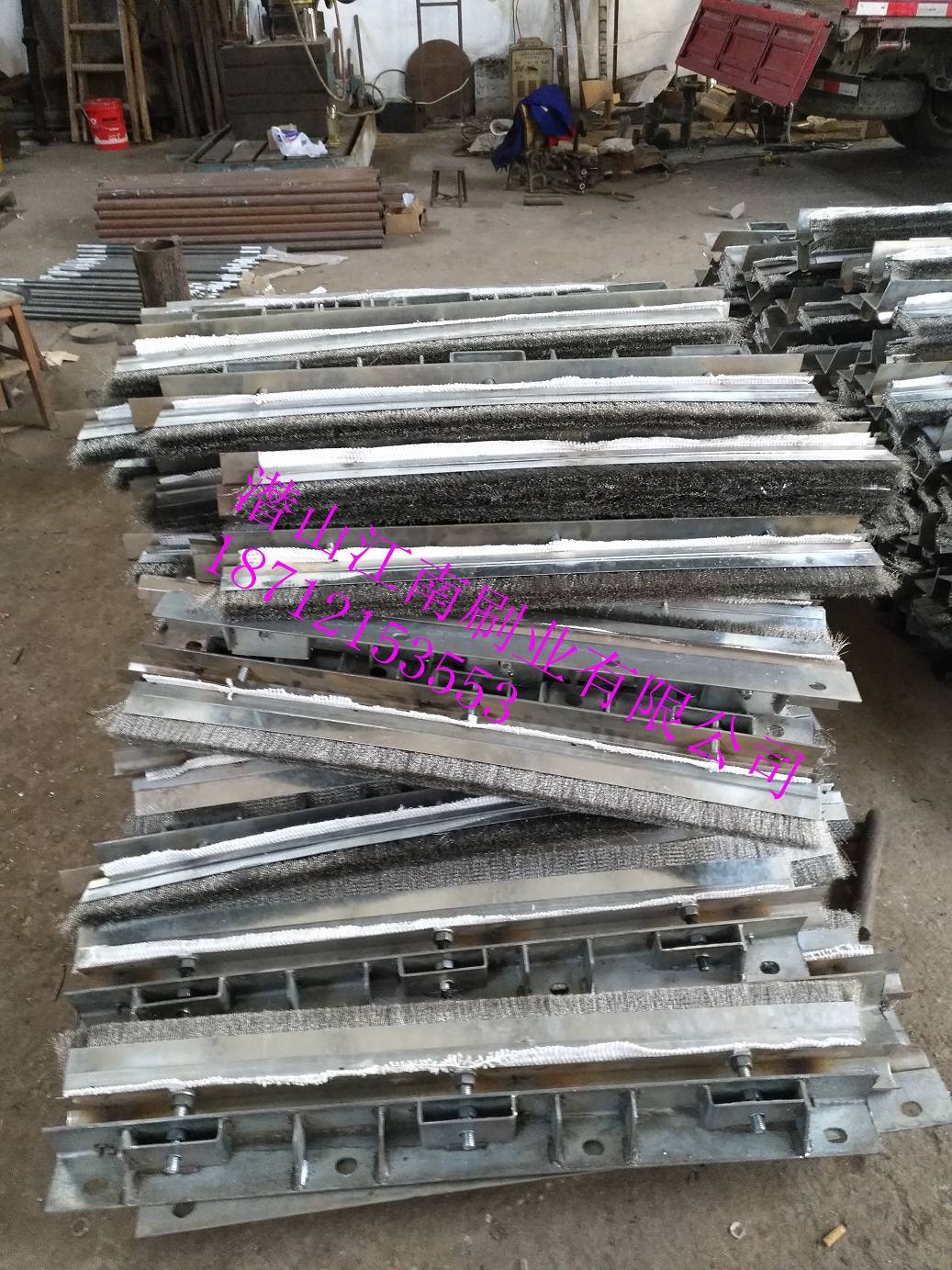 车轮与横梁经过V字型卸料沟后,横梁逐渐接近台车体,为防止块料卡在中间,横梁与台车体之间有一定的间隙,间隙用钢刷式密封代替原橡胶密封。该结构采用密集的耐温耐磨钢刷制作,外面带有磁性物质,生产运行中,钢刷吸附铁粉粒呈圆束状在外层更好地进行密封,见图3。