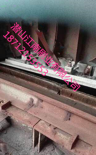 现有的鼓风式环冷机底部密封基本上都是采用橡胶密封,橡胶板多采用耐磨橡胶,具有一定硬度和弹性。由于鼓风环冷机长期在高温、高粉尘环境下运行,密封板磨损较严重;其次,橡胶板有一定硬度,当其与台车梁底部或块料碰撞时易发生折断,从而导致漏风。
