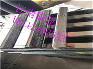 下箱体之间对称设置穿过的调节装置;位于机尾部位的密封台面组件内部设有水冷管。 在本方案中,所涉及的调节装置,包括垂吊设置的螺杆,其上安装弹簧,通过调节