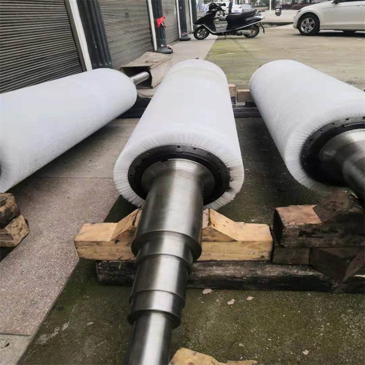 ( 2) 热轧机消棍刷: 热轧机清棍刷的目的 是将热轧时粘在轧 棍辗 体表面的铝粉等污物去除,传统工艺采用钢丝刷。由于钢丝脆性容易断丝.在轧 棍表面容易产生划伤。目前虽有效的还是内喷式磨